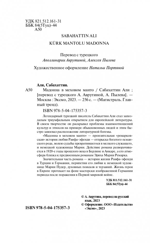 Легендарный турецкий писатель Сабахаттин Али стал запоздалым триумфальным открытием для европейской литературы.В своем творчестве он раскрывал проблемы взаимоотношений культур и этносов на примере обыкновенных людей, и этим быстро завоевал расположение литературной богемы.