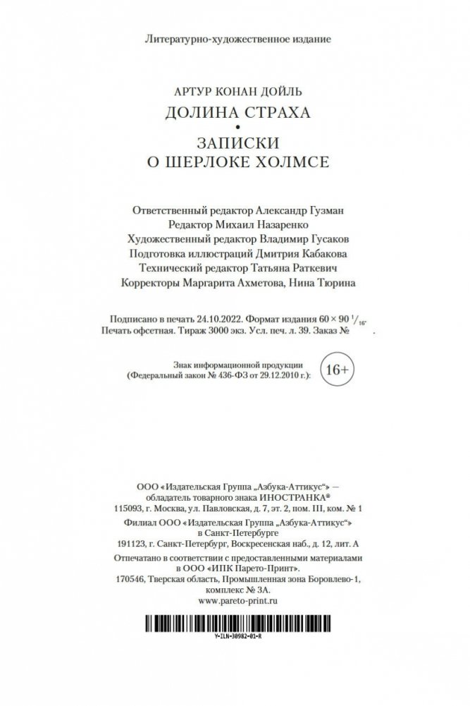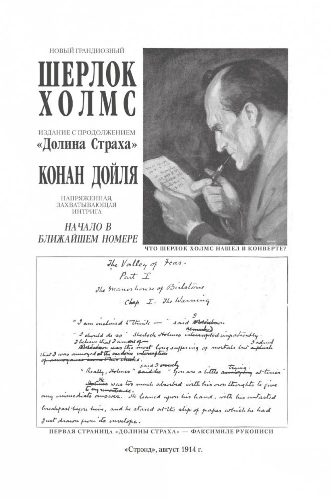 Английский врач и писатель сэр Артур Конан Дойль известен всему миру как непревзойденный мастер детективного жанра, автор множества произведений о гениальном сыщике Шерлоке Холмсе и его верном друге докторе Ватсоне. Классические переводы этих рассказов и романов, делавшиеся давно и множеством разных переводчиков, страдают известными недостатками: расхождения, пропуски, откровенные ошибки. Вашему вниманию предлагается второй том (роман «Долина Страха», сборник «Записки о Шерлоке Холмсе») из четырехтомника с полным переводом всего холмсовского канона. Это воистину уникальное издание: все произведения цикла переведены заново Людмилой Бриловой и Сергеем Сухаревым — мастерами, чьи переводы Кадзуо Исигуро и Рэя Брэдбери, Фрэнсиса Скотта Фицджеральда и Чарльза Паллисера, Томаса Де Квинси, Германа Мелвилла и других давно стали классическими. При этом в каждый том включено множество дополнительных материалов: предисловия к ранним публикациям, воспоминания Конан Дойля, касающиеся тех или иных произведений, некоторые интервью писателя. Плюс каждый том снабжен обширнейшими комментариями и богато иллюстрирован лучшими классическими рисунками. В данную книгу включен полный комплект иллюстраций, сопровождавших исходную публикацию «Записок о Шерлоке Холмсе» и «Долины Страха» в журнале «Стрэнд», — Сидни Пэджета и Фрэнка Уайлза соответственно.