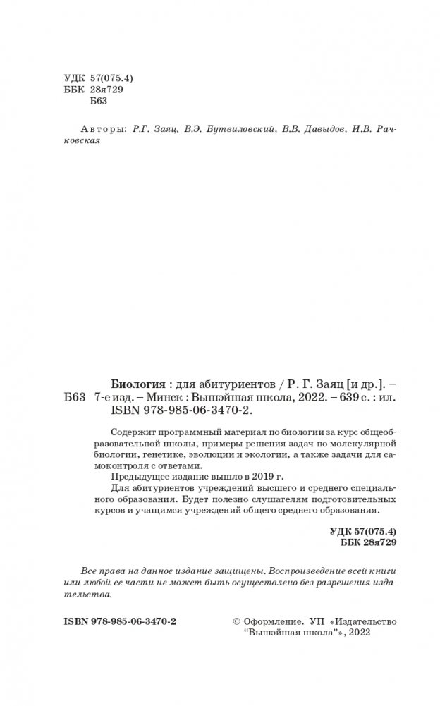 Содержит программный материал по биологии за курс общеобразовательной школы, примеры решения задач по молекулярной биологии, генетике, эволюции и экологии, а также задачи для самоконтроля с ответами.
