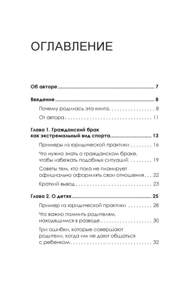 Эта книга станет полезным путешествием в сферу грамотных семейных отношений, поможет по-новому увидеть и минимизировать свои риски в браке, укрепить отношения. Книга будет полезна и тем, кто находится на грани развода и хочет пройти этот сложный период с минимальными душевными и финансовыми потерями.