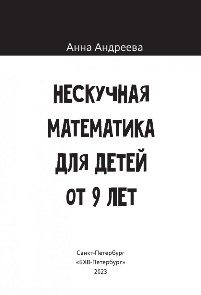 Книга содержит разнообразные занимательные задания и способствует развитию логики, аналитических и математических способностей, пространственного воображения, памяти, внимания и сосредоточенности у детей от 9 лет. Все задания объединены по темам: задания с фигурами; составление чисел, логические задачи, четность, комбинаторика, запись чисел, сравнение и перевод величин, периметр и площадь, вычисления и уравнения и другие нескучные задания. Ответы на все задания даны в конце книги.