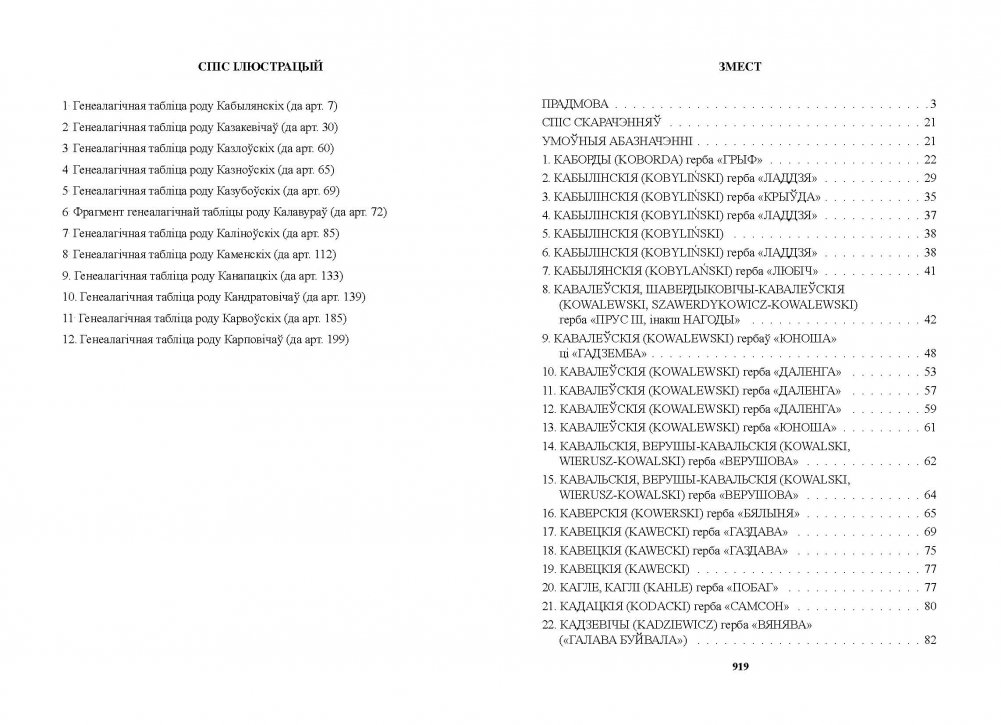 Кніга – працяг шматтомнага выдання, распачатага ў 2002 г. У першай частцы восьмага тома «Гербоўніка беларускай шляхты» пададзена 224 радаводы шляхты пераважна Мінскай губерні з прозвішчамі на літару «К» (ад «Каборды» да «Карэцкія»), складзеныя на падставе матэрыялаў фонду Мінскага дваранскага дэпутацкага сходу.
