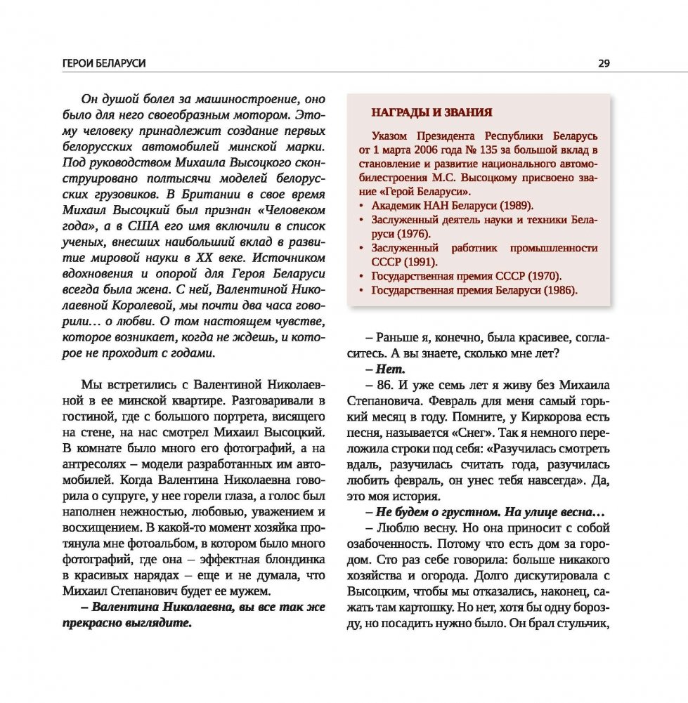 Автором книги является главный редактор газеты «Знамя юности» Николай Мачекин. В издании представлены двенадцать интервью, посвященных людям, удостоенным высокого звания «Герой Беларуси». Материалы подаются через воспоминания родственников, детей, близких друзей, коллег. Каждое интервью - откровение. В каждой беседе представлены факты, о которых до этого не писали в средствах массовой информации.