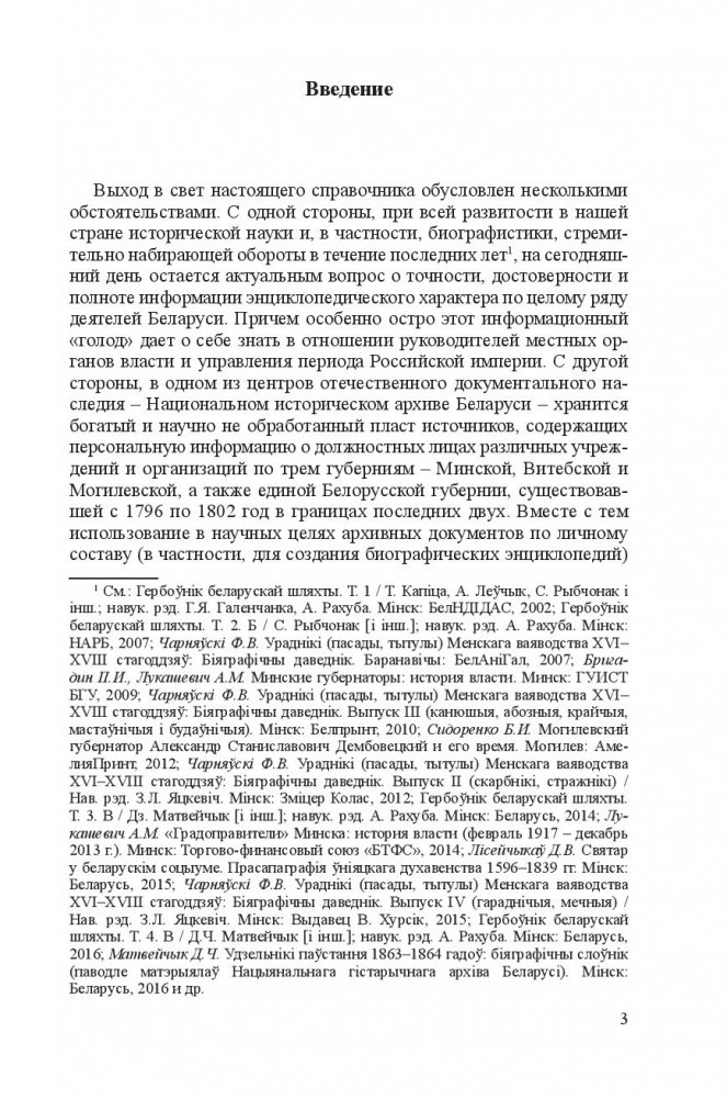 Издание представляет собой первый опыт систематизированной реконструкции персонального состава высшей административной власти Минской губернии периода Российской империи (1793-1917) на основе архивных документов, печатных источников и различной справочной литературы.