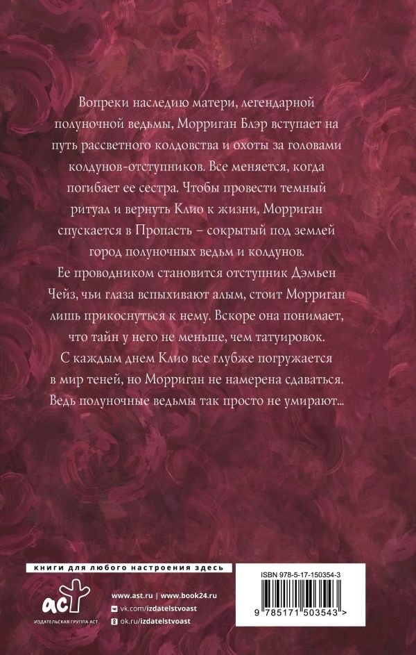 город полуночных ведьм и колдунов. Ее проводником становится отступник Дэмьен Чейз, чьи глаза вспыхивают алым, стоит Морриган лишь прикоснуться к нему. Вскоре она понимает, что тайн у него не меньше, чем татуировок. С каждым днем Клио все глубже погружается в мир теней, но Морриган не намерена сдаваться.