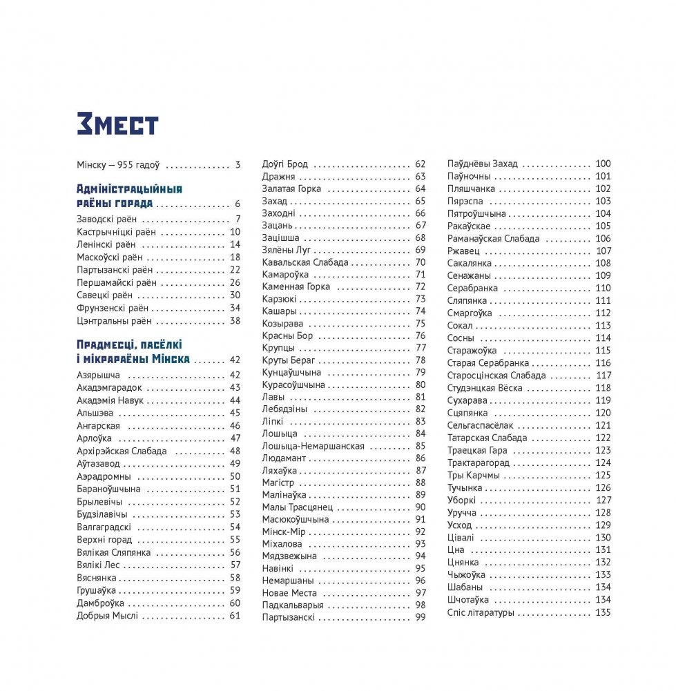 Кніга апавядае пра тэрытарыяльныя аб’екты Мінска — адміністрацыйныя раёны і мікрараёны, былыя пасёлкі і прадмесці, а таксама вёскі, якія ўвайшлі ў склад горада. Назвы многіх з іх нам добра вядомы, імі актыўна карыстаюцца, іх найменні сустракаюцца кожны дзень. Пра іншыя мінчане мала што ведаюць, а некаторыя — амаль забытыя. Раёны і мікрараёны, прадмесці і пасёлкі — нібыта каляровыя кавалачкі, з якіх складаецца мазаіка карты Мінска.