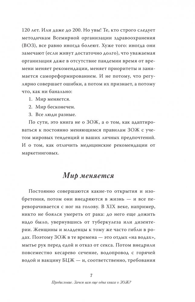 Вы знаете, что для здоровья нужно проходить 10 тысяч шагов в день? Конечно! Это всем известно. Но мало кто догадывается, c какого потолка взялась эта цифра. И нет ни одного научного исследования, в котором бы она подтвердилась. А про идеальный ИМТ (индекс массы тела) тоже в курсе? По всей видимости, это сильно устаревший индекс. И к здоровью он имеет не самое прямое отношение. Представления о ЗОЖ меняются довольно регулярно. 25 лет проработав в популярных газетах и журналах, автор книги "Базовый ЗОЖ: сахар, жир и фитнес-тренды" заметила, что если в марте в редакцию приходит много пресс-релизов о пользе лактобактерий, значит, к маю выпустят новую линейку йогуртов.