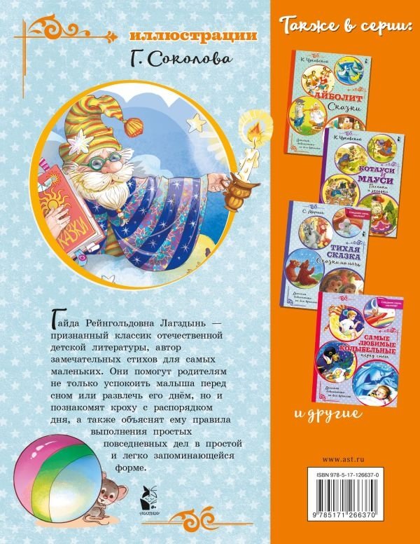 Гайда Рейнгольдовна Лагздынь — признанный классик отечественной детской литературы, автор замечательных стихов для самых маленьких. Они помогут родителям не только успокоить малыша перед сном или развлечь его днём, но и познакомят кроху с распорядком дня, а также объяснят ему правила выполнения простых повседневных дел в простой и легко запоминающейся форме.
