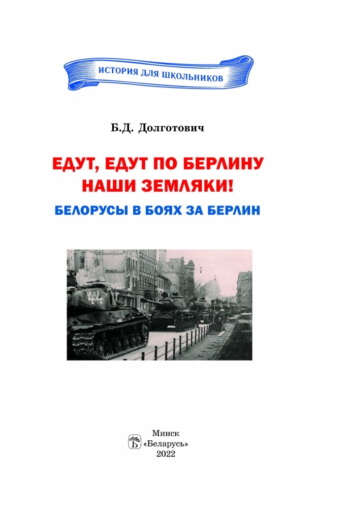На страницах издания автор рассказывает, как в ходе Берлинской стратегической операции проявили себя белорусы, сражаясь плечом к плечу с бойцами Красной Армии многонационального Советского Союза и воинами зарубежных стран против немецко-фашистских захватчиков. На основе биографических сведений наших земляков воссоздана картина последней битвы Великой Отечественной войны.