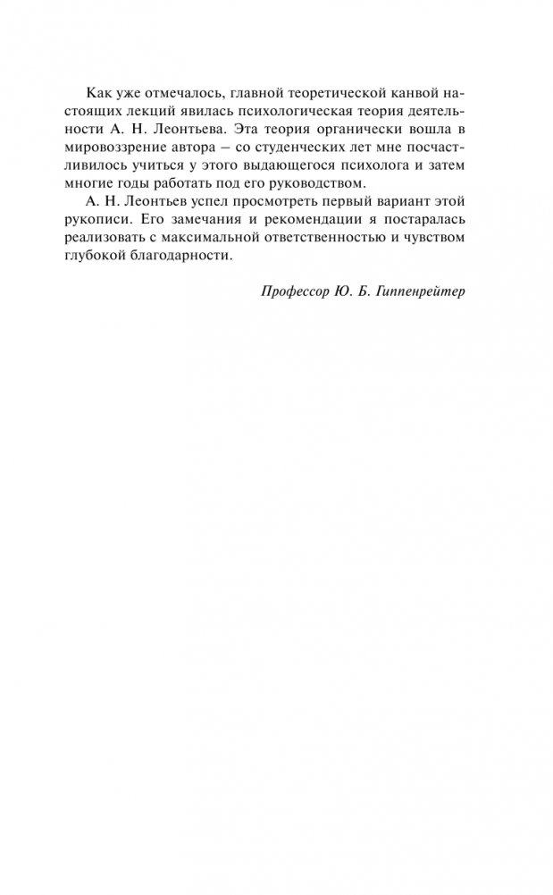 В учебном пособии раскрываются основные понятия психологической науки, освещаются ее важнейшие проблемы и методы. Книга, созданная на основе курса лекций, читавшегося автором в течение многих лет на факультете психологии МГУ для студентов 1-го курса, сохраняет непринужденность общения с аудиторией, содержит большое количество примеров из экспериментальных исследований, художественной литературы, жизненных ситуаций. В ней удачно сочетаются высокий научный уровень и популярность изложения фундаментальных вопросов общей психологии.