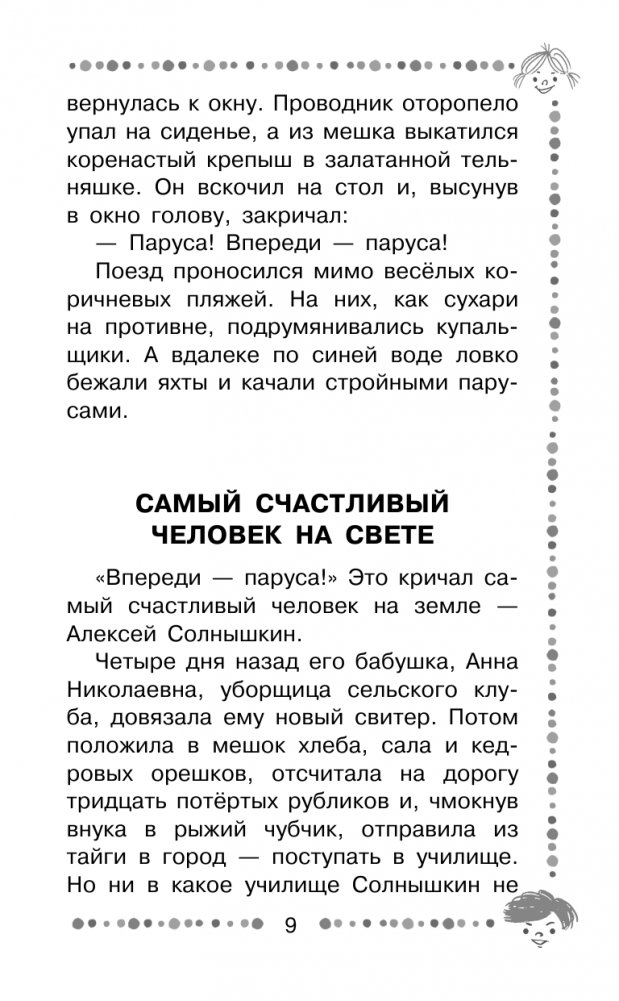Жизнь Виталия Титовича Коржикова (1931 — 2007) была полна ярких событий и впечатлений. Получив специальность учителя русского языка и литературы, следом он решил освоить профессию моряка и… оставил поприще преподавателя. Впереди его ждали далёкие страны и бесконечные воды океанов и морей. Герой повести В. Коржикова "Весёлое мореплавание Солнышкина" Алёша Солнышкин тоже покорён морской стихией и очарован романтикой дальних плаваний, а потому он твёрдо намерен стать моряком! Но, увы, в морскую школу его не взяли. Алёша не отчаялся и всеми путями стал искать возможность осуществить свою мечту. И не зря старался — сколько приключений ждало его впереди!