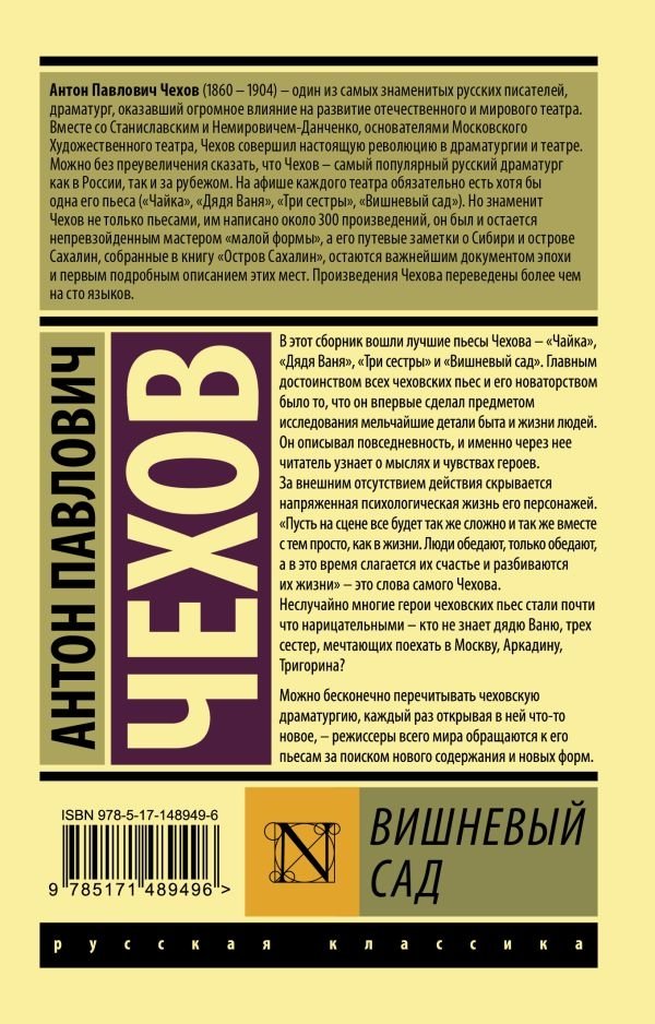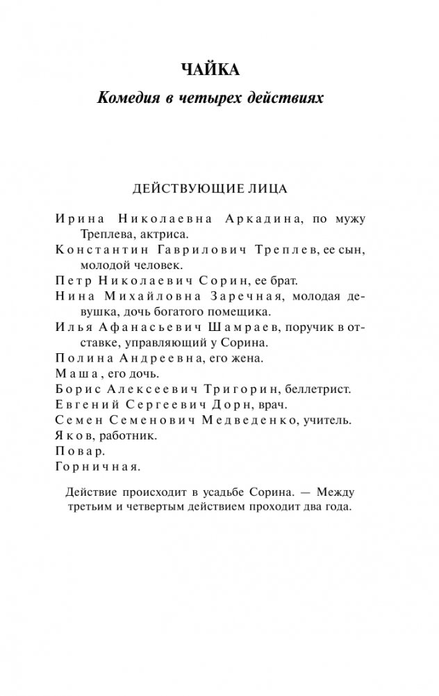 В этот сборник вошли лучшие пьесы Чехова – "Чайка", "Дядя Ваня", "Три сестры" и "Вишневый сад". Главным достоинством всех чеховских пьес и его новаторством было то, что он впервые сделал предметом исследования мельчайшие детали быта и жизни людей. Он описывал повседневность, и именно через нее читатель узнает о мыслях и чувствах героев. За внешним отсутствием действия скрывается напряженная психологическая жизнь ее персонажей. "Пусть на сцене все будет так же сложно и так же вместе с тем просто, как в жизни. Люди обедают, только обедают, а в это время слагается их счастье и разбиваются их жизни" – это слова самого Чехова.