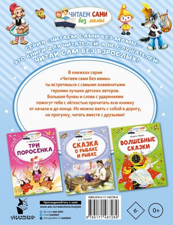 В книгу вошли весёлые и поучительные сказки популярных отечественных авторов В. Коростылёва, В. Сутеева, М. Липскерова со знакомыми всем с детства иллюстрациями. Вместе с героями сказочных историй дети прогуляются по Тридевятому царству, спасут Красную Шапочку и подружатся с самым маленьким гномом и другими обитателями волшебного леса. Истории научат малышей трудолюбию, отваге и дружелюбию. Все тексты даны с ударениями, чтобы облегчить задачу начинающим читателям.