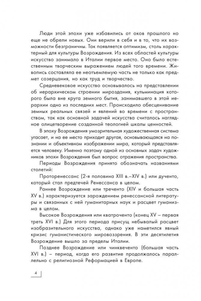 Возрождение – одна из самых ярких и изменивших мировоззрение людей эпох в мировой культуре и феноменальное явление в истории человечества. Это было время нового осмысления природы и человека и грандиозных перемен в истории европейских народов. Переворот, произведенный в эпоху Возрождения в области духовной культуры, имел огромное историческое значение. Из всех областей культуры искусство занимало в Италии первое место. Оно было естественным творческим выражением людей того времени. Поэтому не случайно именно с этой эпохой ассоциируются имена великих живописцев, скульпторов, архитекторов, первооткрывателей и исследователей. Их великие произведения пережили свое время и, пройдя через века, сохранили силу своего воздействия на зрителя, дали толчок к развитию своеобразных национальных культур, а разработанный ренессансными мастерами реалистический метод определил дальнейшее развитие всей художественной культуры Нового времени.