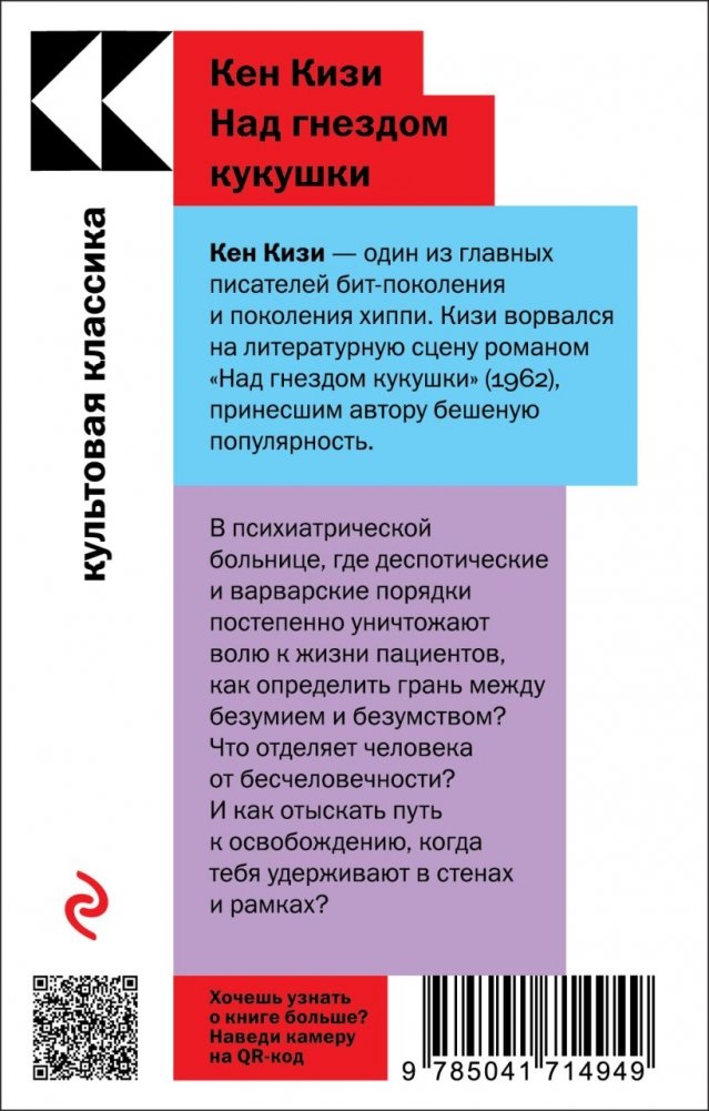 Культовый роман, который входит в сотню самых читаемых по версии «Таймс». Вышел в шестидесятых, в яркое время протеста нового поколения против алчности, обезличивания, войн и насилия. Либерализм против традиционализма, личность против устоев. Роман потрясает глубиной, волнует, заставляет задуматься о жизни, о справедливости, о системе и ее непогрешимости, о границах безумия и нормальности, о свободе, о воле, о выборе.