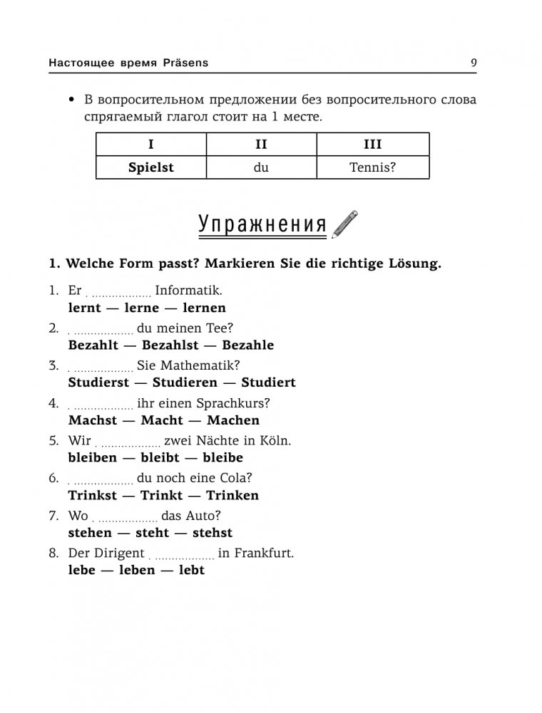 Пособие содержит основные темы учебной программы по немецкому языку. В справочнике рассматриваются времена глаголов, особенности склонения существительных и прилагательных, употребление местоимений, предлогов, наречий, а также правила построения предложений. В приложении представлены списки неправильных глаголов и глаголов с управлением. Теоретический материал проиллюстрирован большим количеством примеров. Схемы и таблицы помогут легко освоить или повторить любую грамматическую тему. После каждой темы даются упражнения, ответы на которые вы найдете в конце пособия.