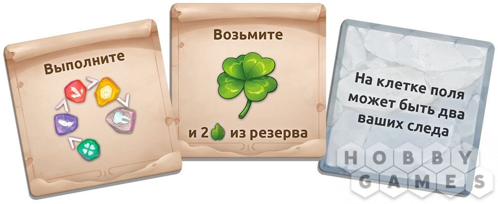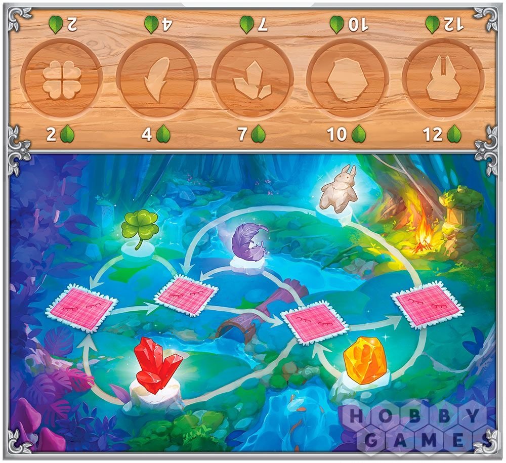 По ходу игры путешественникам предстоит перемещаться по модульному полю и оставлять свои следы на его клетках. На некоторых клетках вы сможете пообщаться с духами и задобрить их, чтобы получить от них подарок. Посещайте разные уголки леса: поляну, озеро, замшелую каменную плиту... Каждый ход вы сможете передвинуться и сделать действие. Двигаться можно только на клетку, на которой ещё нет ваших следов и которая располагается по соседству с клетками, где ваши следы есть (это правило не касается первого хода, сначала свой след можно поставить на любую клетку). После движения вы можете выполнить действие клетки, заплатив листьями за чужие следы на ней, или собрать листья (взять два листка из резерва).