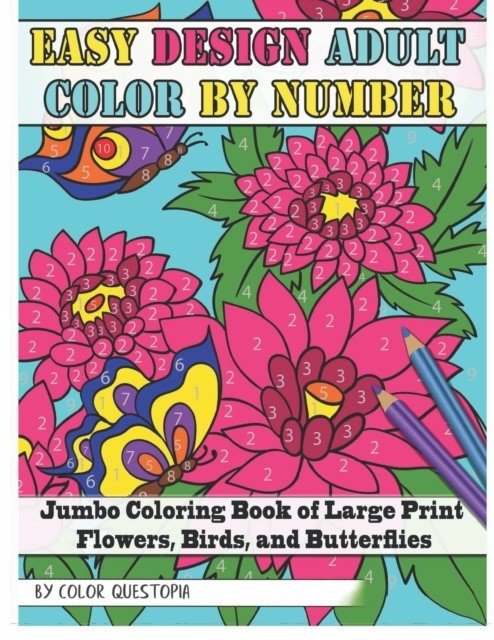 Easy Design Adult Color By Number - Jumbo Coloring Book of Large Print Flowers, Birds, and Butterflies
