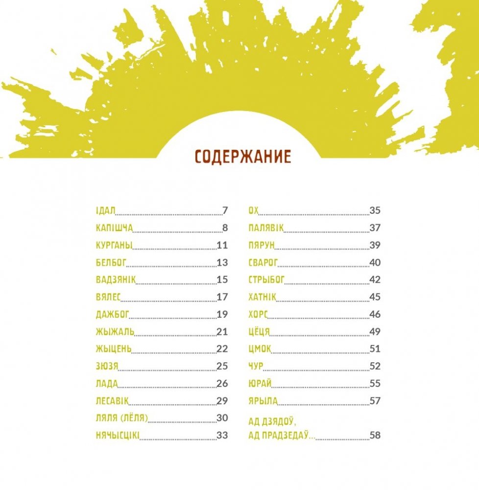 Кніга ў займальнай вершаванай форме знаёміць юных чытачоў з міфалагічнымі ўяўленнямі продкаў беларусаў, з надзвычайнымі істотамі, якія сустракаюцца ў легендах, казках і паданнях. Сярод іх язычніцкія божаствы Вялес, Ярыла, Лада, Пярун, Сварог, Стрыбог, Жыцень, Ляля, а таксама такія персанажы славянскіх чарадзейных казак, як Лесавік, Палявік, Хатнік, Цмок, Вадзянік і іншыя.