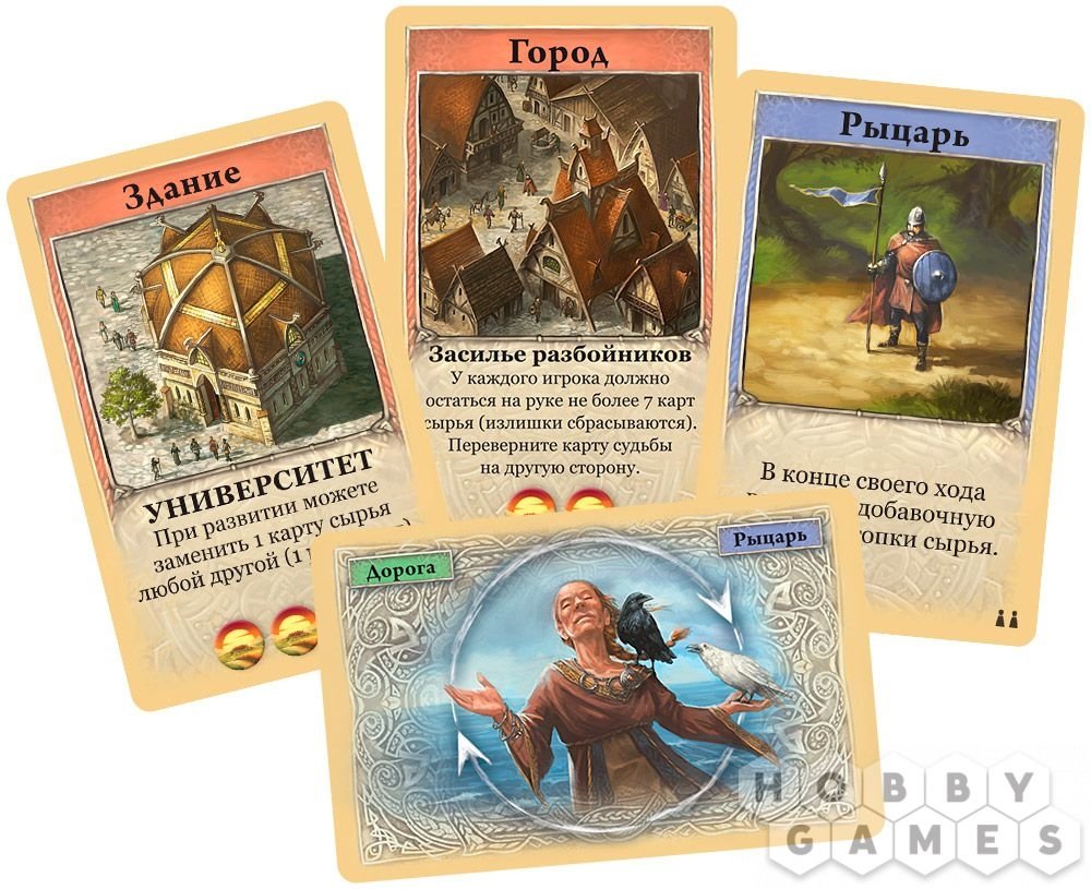 Вам предстоит заниматься распределением сырья для основания поселений, найма рыцарей, строительства городов, дорог и зданий, а также захвата чужих дорог и переманиваем к себе на службу рыцарей соперников. Победителем станет тот, кто первым наберёт 10 очков. Звучит знакомо, не так ли?
