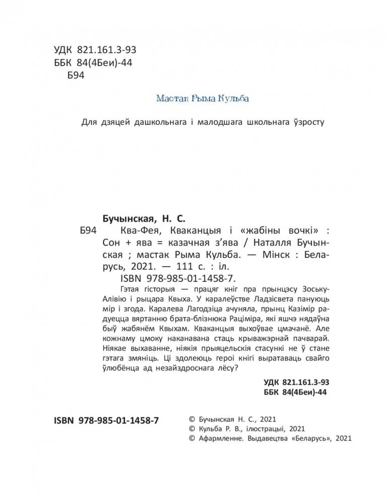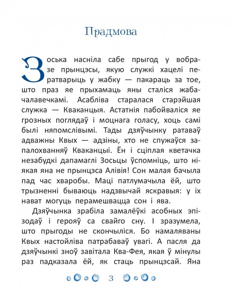 Гэтая гісторыя - працяг кніг пра прынцэсу Зоську Алівію і рыцара Квыха. У каралеўстве Ладзісвета пануюць мір і згода. Каралева Лагодзіца ачуняла, прынц Казімір радуецца вяртанню брата-блізнюка Раціміра, які яшчэ нядаўна быў жабянём Квыхам. Кваканцыя выхоўвае цмачанё. Але кожнаму цмоку наканавана стаць крыважэрнай пачварай. Ніякае выхаванне, ніякія прыяцельскія стасункі не ў стане гэтага змяніць. Ці здолеюць героі кнігі выратаваць свайго ўлюбёнца ад незайздроснага лёсу?