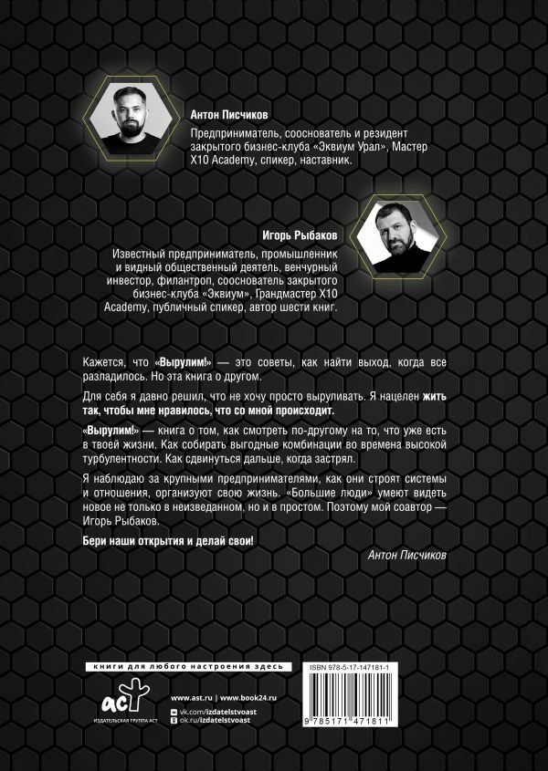 В книге «Вырулим! Книга открытий предпринимателя» авторы рассказывают о своем пути, как они осознано или неосознанно создавали инструменты соединения важных вещей в жизни: бизнес, семья, репутация, здоровье.
