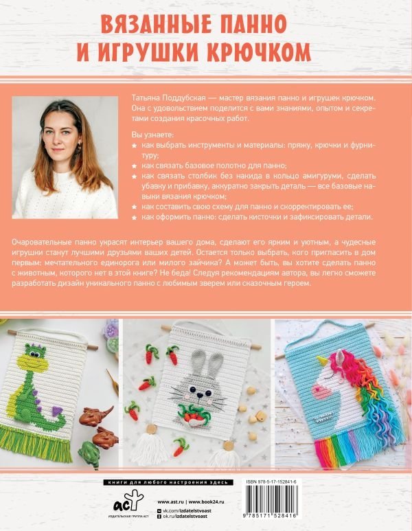 В этой книге собраны подробные мастер-классы по вязанию крючком ярких панно и игрушек. Мечтательный единорог, милый зайчик, отважный лев и другие животные украсят дом, а игрушки-амигуруми станут отличными подарками для детей. С помощью рекомендаций автора вы сможете создать свою схему и связать уникальное панно с животными или сказочными героями. А советы по выбору инструментов и материалов, оформлению изделий и готовые схемы сделают процесс вязания простым и увлекательным!