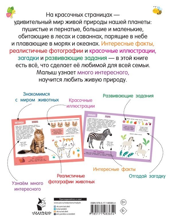 Хотите, чтобы ваш ребёнок рос умным и любознательным? Тогда эта книга для него — познавательное издание в твердом переплете с реалистичными фотографиями и красочными иллюстрациями познакомит с животными, малыш узнает о них много интересного, научится любить живую природу.