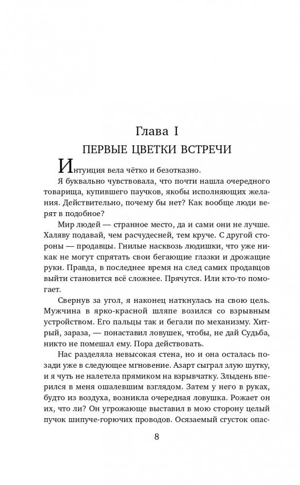 Что будет, если к вам подойдет человек и скажет, что может исполнить любое ваше желание? Городок на краю мира охвачен странной лихорадкой: в разных местах появляются люди, души которых захватывают таинственные пауки. Каждому из них некий торговец счастьем обещал сбыть мечту за разумные деньги. Элеоноре Бриар надо любой ценой разобраться, кто продает людям демонов-пауков, ведь на кону - её Дар, возможность пользоваться магией. Власть злодея растекается по улицам города, загадочный мир Духов таит опасность, а послания из прошлого наводят героиню на неожиданный след.
