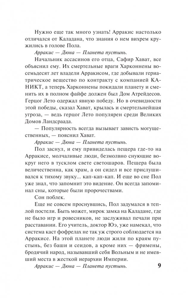 Само существование Империи немыслимо без таинственного ресурса, известного как пряность, или меланж. Пряность добывают в одном-единственном месте во всей галактике — на жестокой и пустынной планете Арракис. Тот, кто контролирует пряность, контролирует всю галактику. Последние 70 лет все права на добычу пряности принадлежали Великому дому Харконненов. Но внезапно падишах-император Шаддам IV отбирает концессию у Харконненов и передаёт её их злейшим врагам — Великому дому Атрейдесов.