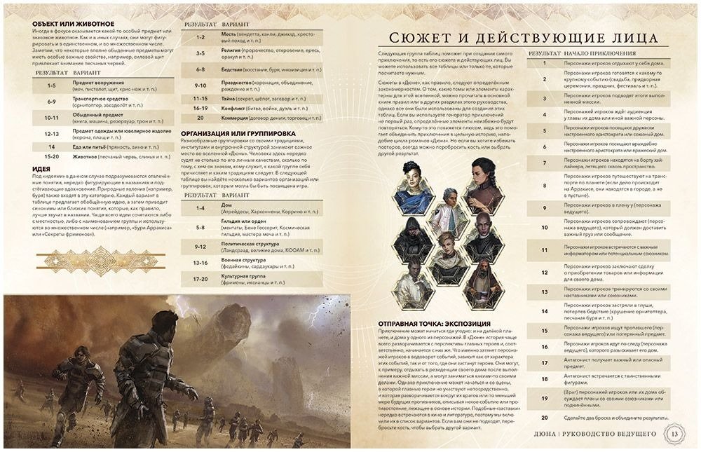 "Дюна" – это настольная ролевая игра, где основным компонентом является фантазия игроков. На основе правил они создают своих персонажей и решают, как те будут действовать по ходу развития сценария. Следить за создаваемой историей, направлять её в нужное русло и управлять игровым миром должен отдельный игрок, который становится ведущим.