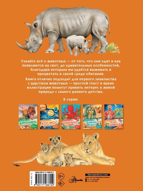 Книга отлично подходит для первого знакомства с царством животных – простой текст и яркие иллюстрации помогут привить интерес к живой природе с самого раннего детства.