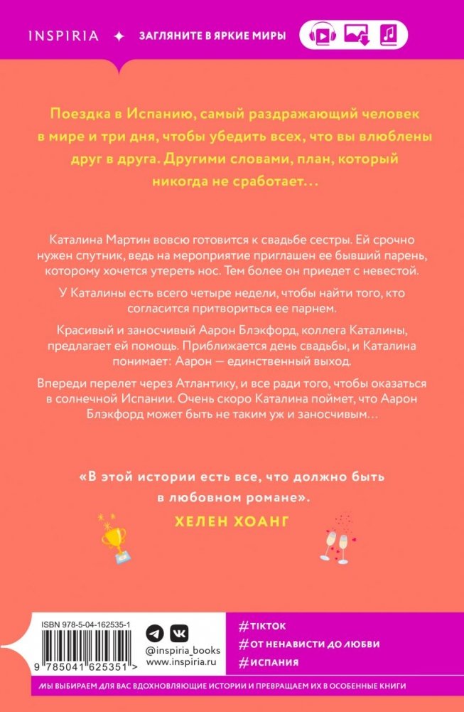 «Только представьте: от ненависти до любви в фейковых отношениях двух противоположностей на фоне жаркой Испании — что может быть романтичнее? Темпераментная и страстная Каталина и закрытый «мистер-робот» Аарон, пытаясь разобраться с мелким обманом, переросшим в катастрофу, затягивают читателя в эпицентр своей беспощадной битвы не только за карьеру, но и за любовь». – ОЛЬГА НОВАК