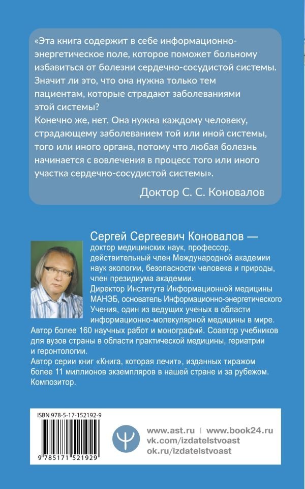 1. Тем, кто страдает от сердечно-сосудистых патологий и других заболеваний, мечтает об исцелении и о сохранении здоровья на долгие годы. Сергей Коновалов помог уже сотням тысяч неизлечимых больных. Автор откроет и вам Путь к здоровью.