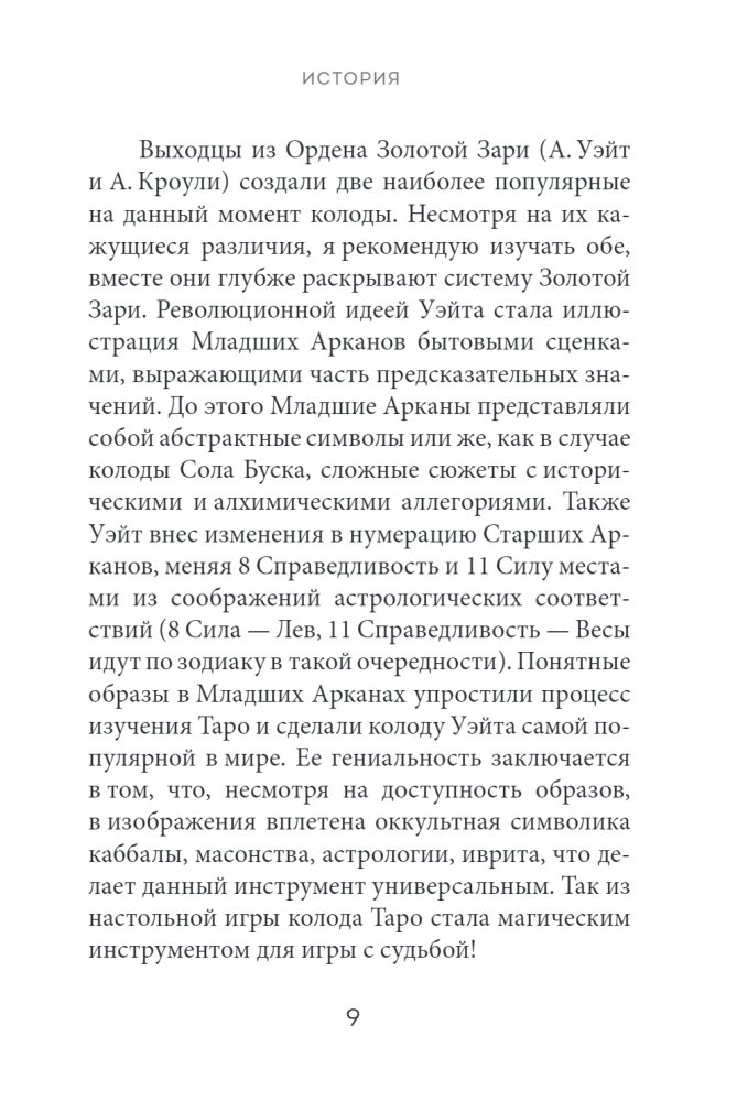 Простое и понятное руководство по картам Таро для начинающих от Анны Огински, руководителя учебного центра "Академия Ленорман", автора книг-бестселлеров. Здесь вы найдете все, чтобы познакомиться с картами Таро и самостоятельно приступить к гаданию: подробные толкования всех 78 карт колоды в прямом и перевернутом положении для разных сфер жизни, правила работы с колодой и базовые расклады, которые легко освоить и использовать. Руководство иллюстрировано колодой Артура Эдварда Уэйта и Памелы Колман-Смит – самой знаменитой и популярной колодой Таро.