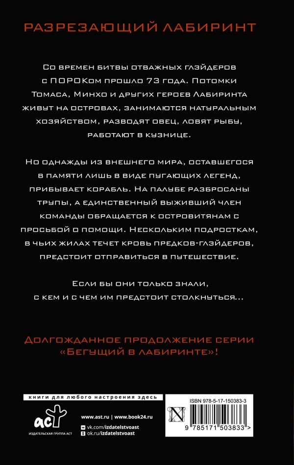 Cо времен битвы отважных глэйдеров с ПОРОКом прошло 73 года. Потомки Томаса, Минхо и других героев Лабиринта живут на островах, занимаются натуральным хозяйством, разводят овец, ловят рыбу, работают в кузнице. Но однажды из внешнего мира, оставшегося в памяти лишь в виде пугающих легенд, прибывает корабль. На палубе разбросаны трупы, а единственный выживший член команды обращается к островитянам с просьбой о помощи. Нескольким подросткам, в чьих жилах течет кровь предков-глэйдеров, предстоит отправиться в путешествие. Если бы они только знали, с кем и с чем им предстоит столкнуться…