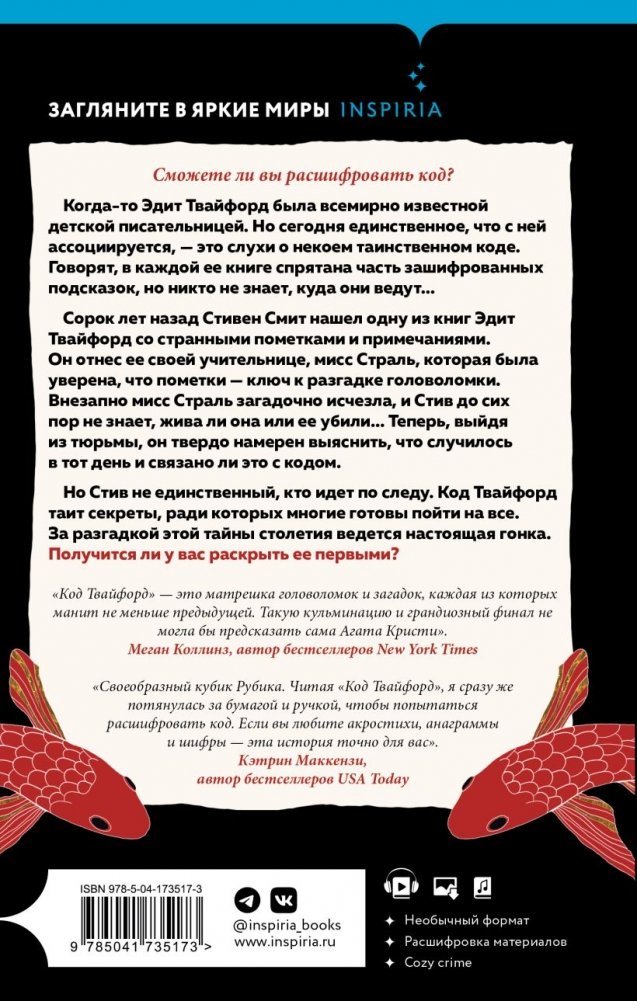 Когда-то Эдит Твайфорд была всемирно известной детской писательницей. Но сегодня единственное, что с ней ассоциируется, — это слухи о некоем таинственном коде. Говорят, в каждой ее книге спрятана часть зашифрованных подсказок, но никто не знает, куда они ведут...