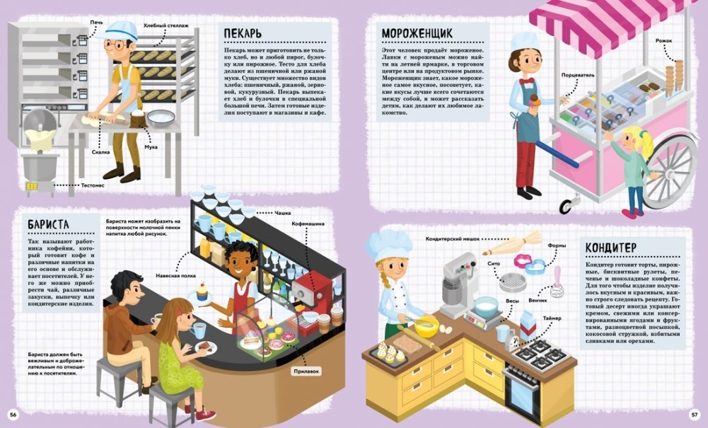 В этой книге представлено множество увлекательных профессий – от строителя до космонавта. Ваш ребёнок узнает, почему каждая из них важна и в чём заключается работа различных специалистов. А ещё он сможет представить, кем станет, когда будет большим!