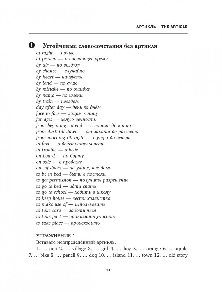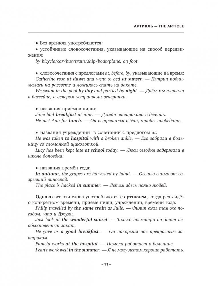 Издание охватывает полный объем грамматики английского языка, необходимый для уровней A1–B1. Здесь подробно рассмотрены такие темы, как времена английских глаголов, модальные глаголы, употребление предлогов, артиклей и местоимений, а также построение вопросов и условных предложений. Наглядные схемы помогут вам разобраться во всех нюансах грамматики английского языка. После каждой главы даются упражнения, выполнение которых поможет проработать и применить на практике теоретический материал. В конце книги вы найдете полезные приложения и ключи к упражнениям.