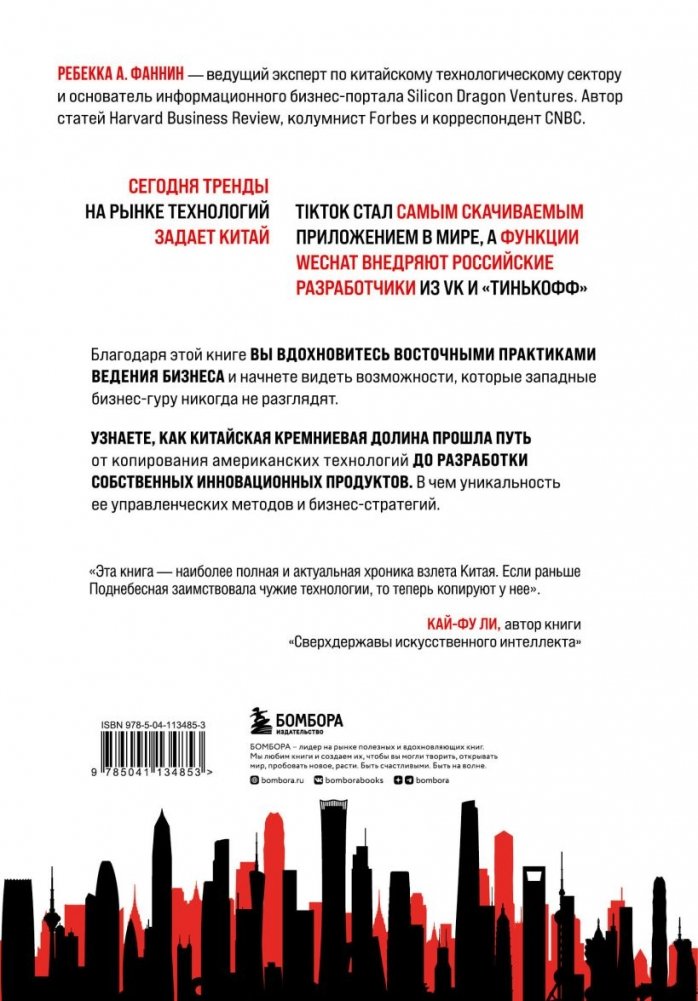 Ребекка А. Фаннин — ведущий эксперт по китайскому технологическому сектору и основатель информационного бизнес-портала Silicon Dragon Ventures. Автор статей Harvard Business Review, колумнист Forbes и корреспондент CNBC.