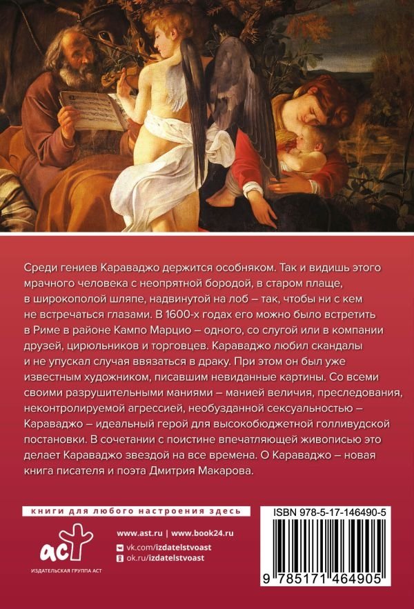 Среди гениев Караваджо держится особняком. Так и видишь этого мрачного человека с неопрятной бородой, в старом плаще, в широкополой шляпе, надвинутой на лоб – так, чтобы ни с кем не встречаться глазами. В 1600-х годах его можно было встретить в Риме в районе Кампо Марцио – одного, со слугой или в компании друзей, цирюльников и торговцев. Караваджо любил скандалы и не упускал случая ввязаться в драку. При этом он был уже известный художник, писавший невиданные картины. Со всеми своими разрушительными маниями – манией величия, преследования, неконтролируемой агрессией, необузданной сексуальностью – Караваджо – идеальный герой для высокобюджетной голливудской постановки. В сочетании с поистине впечатляющей живописью это делает Караваджо звездой на все времена. О Караваджо – новая книга писателя и поэта Дмитрия Макарова.