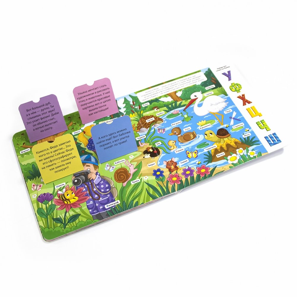 Книжка с окошками «Азбука» - это развлекательное пособие для детского развития. Благодаря этой книге ребёнок выучит все буквы алфавита без особого труда. Посмотрите сами! В книге – 10 красочных страниц с различным содержанием – так что ребёнку будет интересно следить за сюжетом. Плюс на каждом развороте этого пособия есть окошки с занимательными фактами об окружающем мире и задания на поиск слов! Ребёнок пополняет словарный запас, учит буквы – и всё это в лёгкой игровой форме! Удобный формат книжки – 16х16 см., позволяет брать её в дорогу, на прогулку и тд. А плотный картон обеспечивает износостойкость.