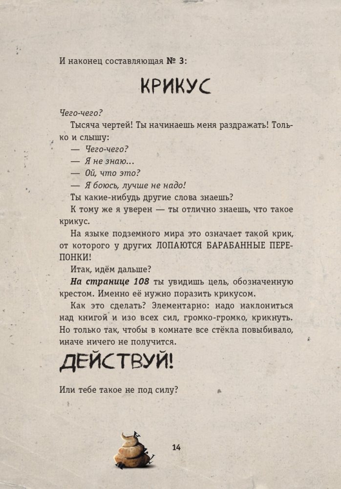 Если ты думаешь, что книги — это что-то скучное, то у меня для тебя БОЛЬШО-О-ОЙ сюрприз! Ведь в этой книге живёт самое необычное, великолепное и ужасное существо на свете! Ну, то есть я — Шмыгоцефал Семнадцатый, или просто Шмыга. Мне очень нужна помощь умного, смелого и желательно ВСЕМОГУЩЕГО читателя. А всё потому, что я… ЗАСТРЯЛ! Я больше не могу сидеть в этой книге и хочу домой! Конечно, тебе придётся постараться и пройти самый настоящий квест, пробудить магию и найти мощное заклятие, чтобы освободить меня. Но я уверен: вместе мы справимся!