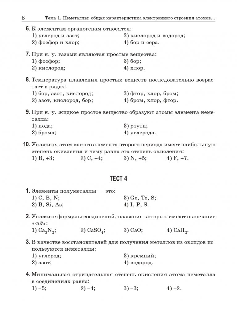 Книга содержит огромное количество разнообразных тестов по химии элементов, адресована в первую очередь абитуриентам и репетиторам. Пособие окажет существенную помощь при подготовке к вступительным испытаниям по химии, в какой бы форме они ни проводились.