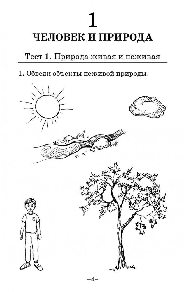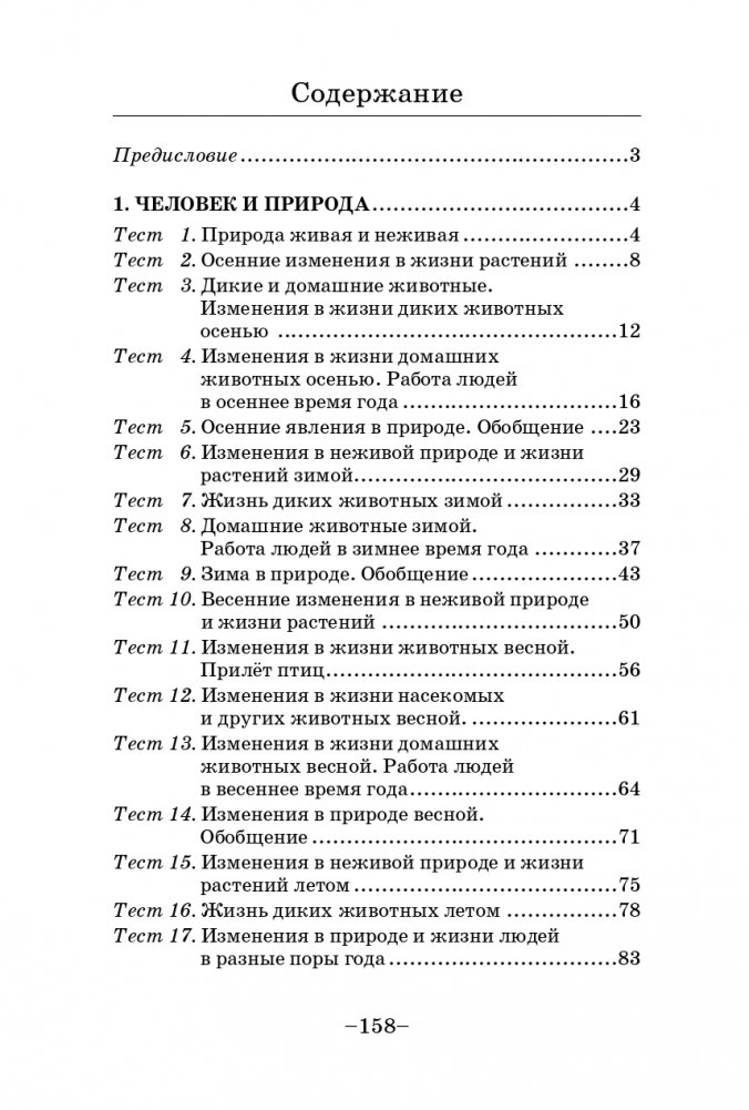 Пособие включает в себя тесты по трём разделам курса: «Человек и природа», «Человек и общество», «Человек и его здоровье».