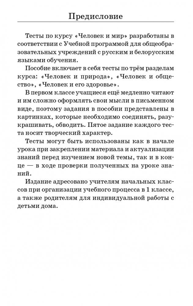 Тесты по курсу «Человек и мир» разработаны в соответствии с Учебной программой для общеобразовательных учреждений с русским и белорусским языками обучения.