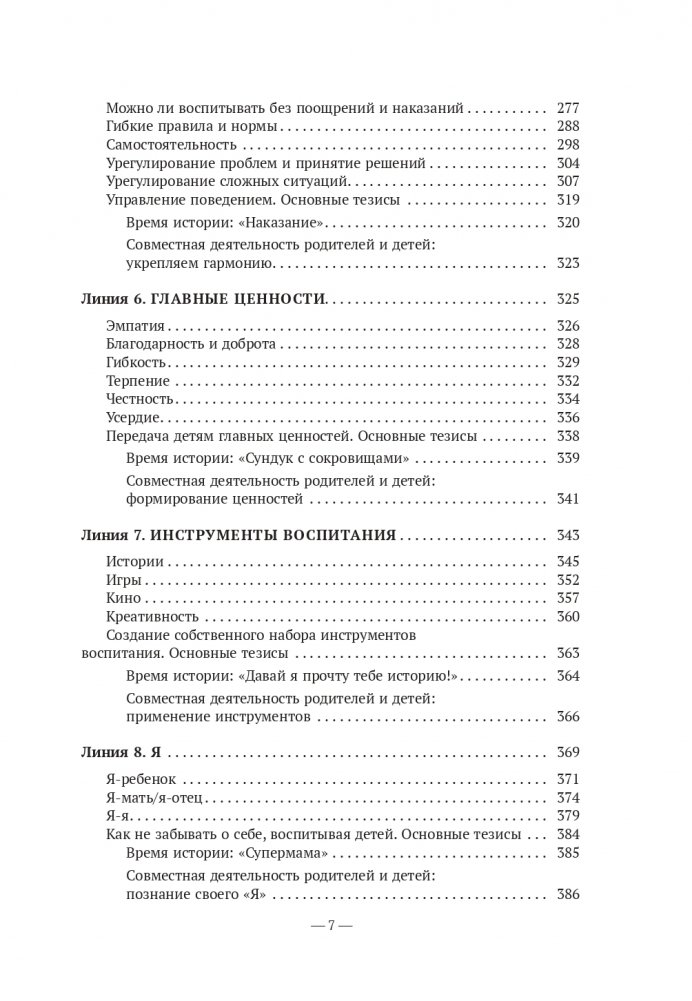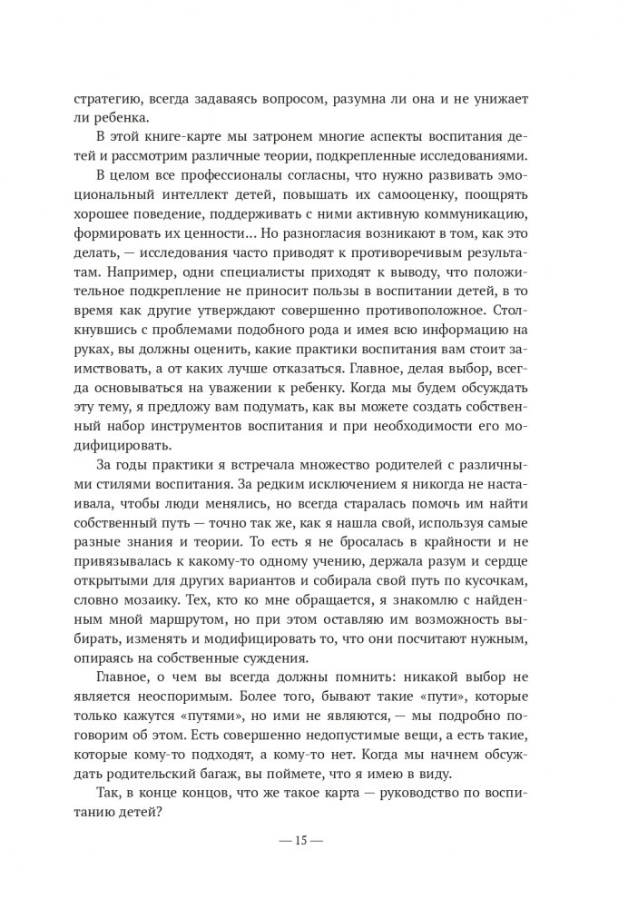 В конце каждого из разделов, рассматривающего тот или иной аспект воспитания, вы найдете список наиболее важных тезисов по данной теме, сочиненную автором историю и предложения по совместной родительско-детской активности, которые являются отличным дополнением к теоретическому материалу.