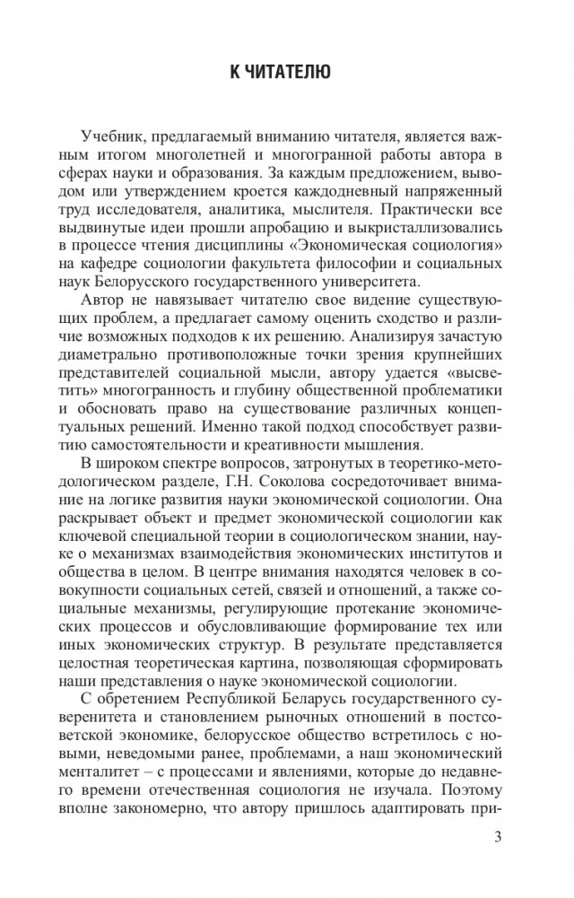 Раскрывается логика развития экономической социологии как специальной теории с присущими ей объектом, предметом и системой категорий, "работающих" в русле основных социально-экономических законов. Содержится обширный исторический раздел, посвященный этапам развития экономической социологии, включая актуальные проблемы и тенденции развития экономической социологии в XXI в. В теоретико-методологическом разделе рассмотрены основные социально-экономические законы разделения и переменя труда, закон конкуренции, а также взаимодействие этих законов в процессе глобальных изменений в мире. Впервые представлены детально разработанные методы социологических исследований: социологический анализ, социологическое моделирование, социологическая экспертиза.