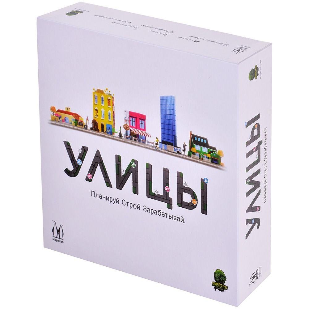 "Улицы" – это градостроительная экономическая стратегия с несложными правилами, которая отлично подойдёт для компании или семьи начинающих настольщиков. Чтобы победить, вам нужно зарабатывать деньги, они выступают в роли победных очков. Бизнес-жетоны и советники с уникальными асимметричными способностями разнообразят игру и сделают финансовое противостояние ещё интереснее.