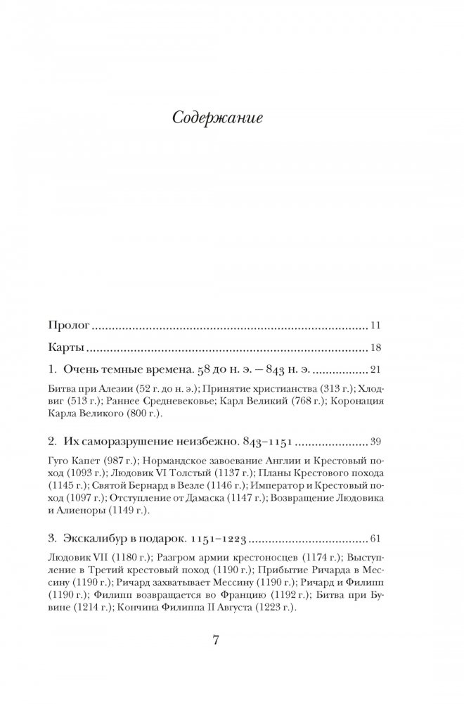 «История Франции — это не только Наполеон, Жанна д’Арк и Людовик XIV. Я расскажу о судьбе несчастных тамплиеров в руках одиозного Филиппа Красивого и о событиях, произошедших с его невестками в Нельской башне; о прекрасной мадам де Помпадур и противоречивой мадам де Ментенон; о Луи-Филиппе, почти забытом сегодня, но, наверное, лучшем короле в истории страны; и это только начало. Первая глава в быстром темпе сопроводит нас от галлов и Юлия Цезаря до Карла Великого, охватив около восьми столетий. Последняя глава расскажет о пяти годах Второй мировой войны — 1945 год заканчивает одну эпоху и начинает новую». (Джон Норвич)